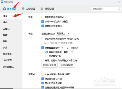 4. 點【根基設置】-【登錄】,封閉主動登錄。