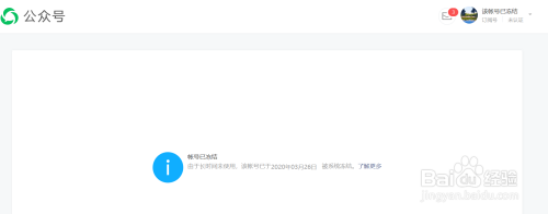 填寫公家號信息并登錄,右上角顯示賬號被凍結