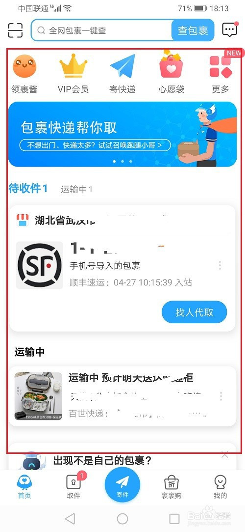 第五步我們可以在菜鳥裹裹首頁看到我們的快遞信息,如下圖所示: