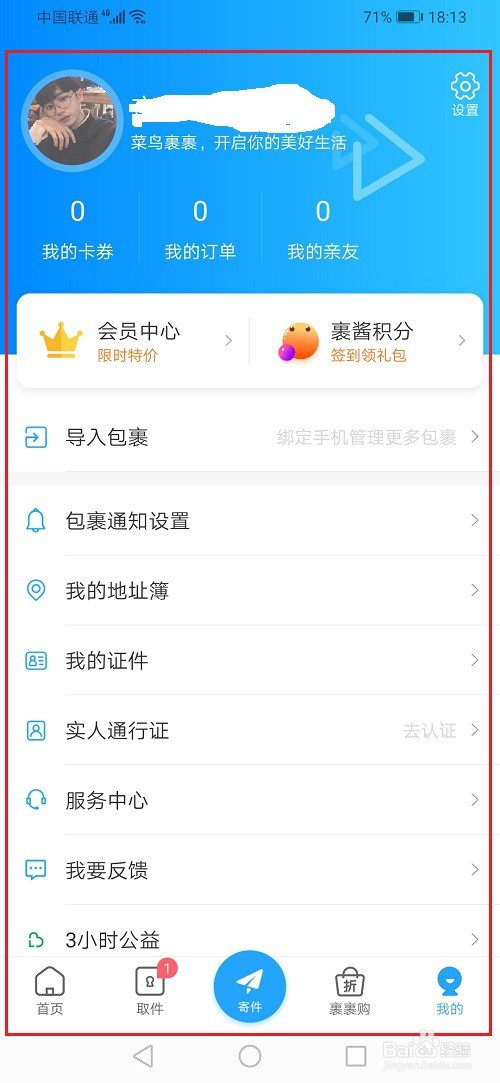 第一步手機上打開菜鳥裹裹,點擊進去,如下圖所示: