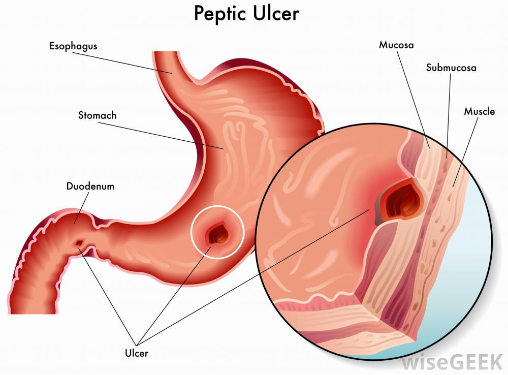 大多數消化性潰瘍源于胃中的