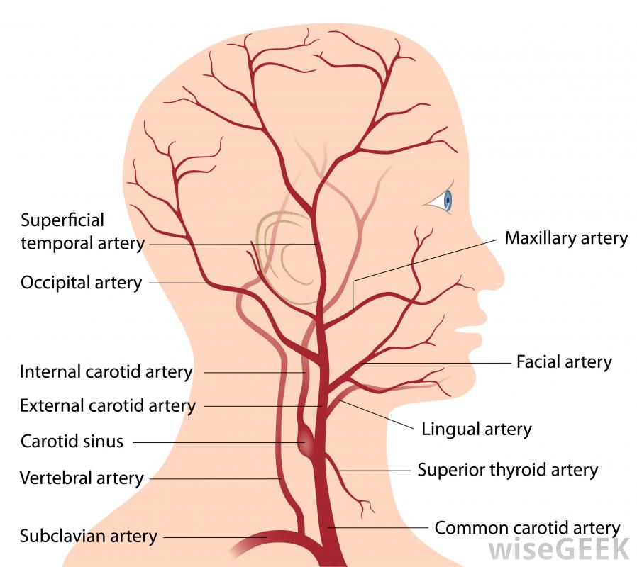 人體頭頸動脈的示意圖。