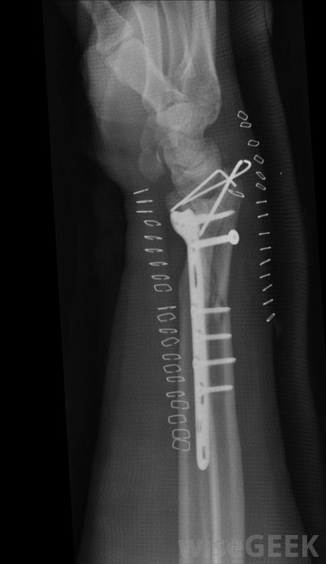 嚴重的撞擊骨折通常需要使用鋼板,用桿和螺釘將骨重新對齊。