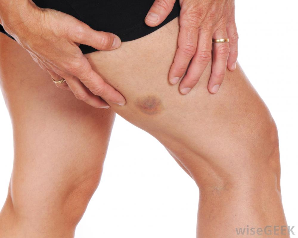 腿部瘀傷。