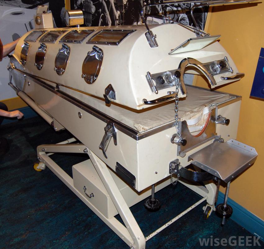 鐵肺,一種從頸部延伸到下腹部的巨大機器,在20世紀20年代首次用于治療呼吸問題。