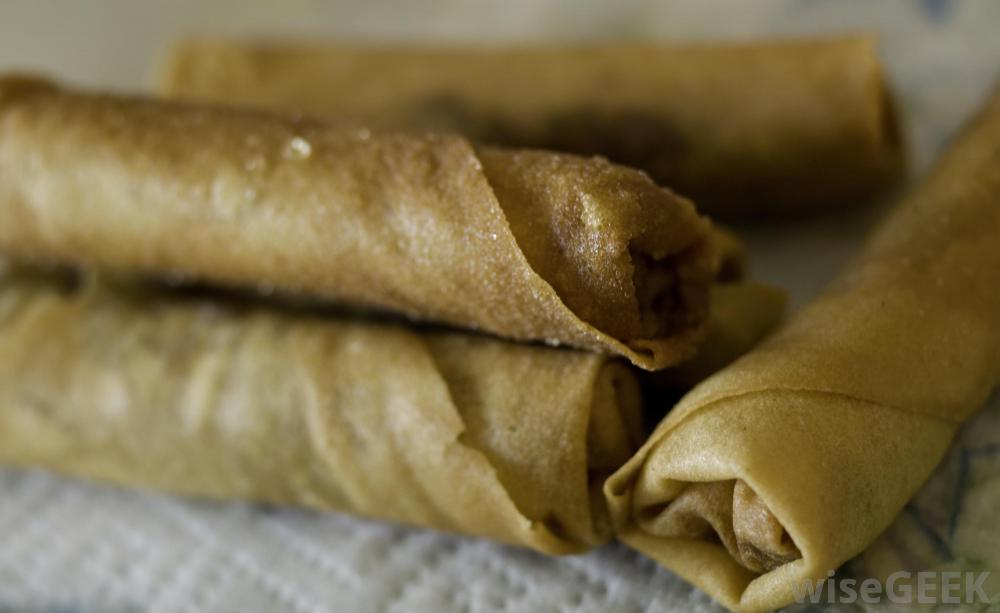 和他們的中國表兄弟一樣,越南的蛋卷通常是油炸的。它們放入大約2英寸(約4厘米)的微起泡的食用油中。它們通常每面煎大約4分鐘。吃完后,它們應該是脆的、金黃色的,并且里面有蒸汽雞蛋卷是亞洲受歡迎的開胃菜,含有各種肉類和蔬菜。