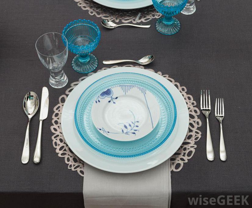 餐桌布置禮儀也規定了餐具的擺放順序。餐具的數量取決于所供應的菜肴。餐叉應該放在盤子的左側,刀子應該放在右側,因為這是手晚餐的客人將為他們使用。第一道菜使用的任何器具都在餐具的外面,連續的菜都在里面。如果需要湯匙,請按正確的順序放在右手邊