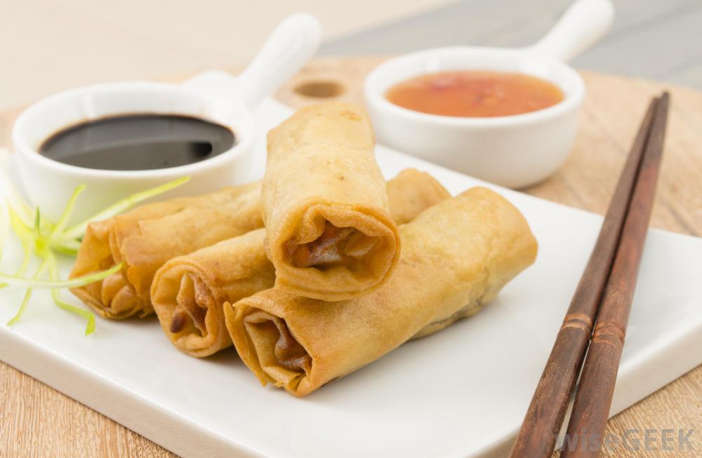 玉米淀粉,中國南方的粵菜對美國的中餐影響最大,蛋卷就是一個很好的例子。粵菜通常是油炸的,蛋卷也是。在中餐館里,蛋卷通常與組合晚餐一起供應,大的也不錯午餐,還有一碗湯。