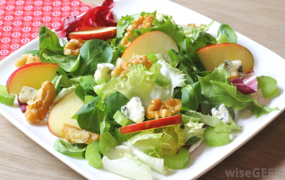蘋果沙拉是一種最簡單的制作方法,它將切片或切碎的蘋果與沙拉蔬菜(如菠菜)混合在一起。這種搭配可以與清淡的調味料一起攪拌,也可以與烤杏仁、松仁和碎奶酪混合。與蘋果綠色沙拉搭配的其他配料包括胡蘿卜、核桃和干果等作為葡萄干。加入雞肉、火雞或金槍魚做成更美味的沙拉。