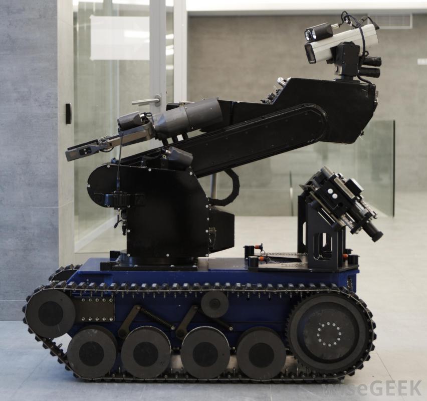 機器人制造商通常使用一個通用的底盤,用于警察使用的拆彈機器人和軍隊部署的戰斗機器人。現代軍用機器人被用來填充各種壁龕,從偵察到威脅評估。一些用于偵察行動的最小無人值守地面車輛的長度不到一英尺(約0.3米),中型無人值守地面車輛通常被用來定位簡易爆炸裝置(IED),然后才能傷害人類士兵,進入并評估潛在的敵對環境。其中一些機器人還被設計用來執行更特殊的任務,例如,進入危險環境以救出受傷的士兵。最大的無人值守地面車輛可以是卡車或坦克大小,并且可以執行與有人駕駛的車輛相同的許多任務。無人值守地面車輛執行的兩個主要功能是偵察工作和條例的實施。設計用來收集情報的無人機的大小可以有所不同,從可以裝在背包里的單位到和有人駕駛飛機一樣大的其他單位。小型無人機通常用于偵察,因為它們可以由士兵攜帶進戰場,然后被派往前方評估一些軍用機器人有固定的翅膀,而另一些則是直升機。大型無人機也經常被用來收集情報,盡管有些還裝備了導彈、炸彈,以及其他武器系統。