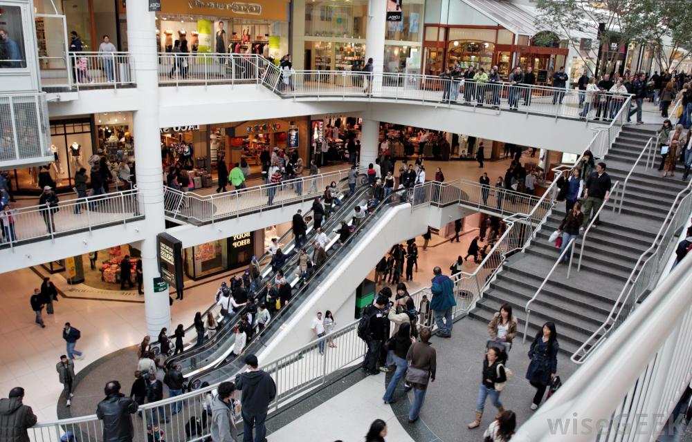 商場通常提供自動扶梯。自動扶梯類似于傳送帶,但不同之處在于它位于斜坡上,有一個樓梯表面,而不是扁平的傳送帶。大多數自動扶梯還包括與樓梯。要從自動扶梯的一端移動到另一端,一個人可以簡單地站在一個臺階上,直到一個臺階到達另一端,或者一個人可以像傳統的樓梯一樣爬或下自動扶梯。繁忙地區的許多自動扶梯寬到足以容納兩列人,而那些希望按慣例站在自動扶梯一側的人則會留在電梯旁。