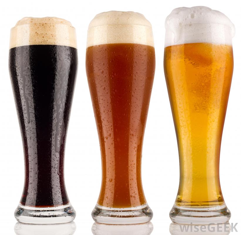 一杯烈性啤酒、一杯棕色麥芽酒和一瓶淡啤酒。
