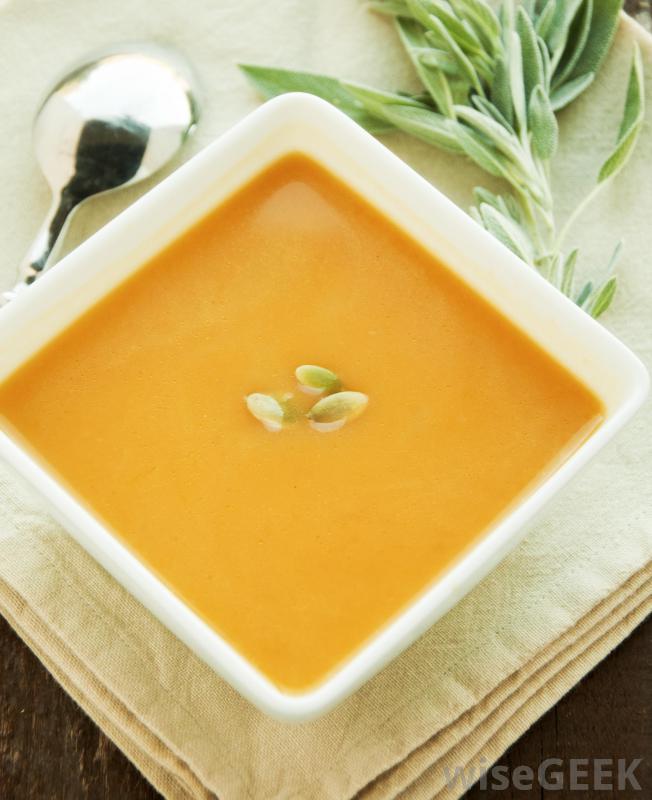 南瓜是紅薯湯中一種很受歡迎的配料有兩種紅薯可以用來做紅薯湯。較甜的品種有深橙色到棕色的皮膚和非常明亮的橙色果肉。它們有時被錯誤地標記為山藥,雖然這兩種不同,但顏色較淺的甘薯,其皮黃色至棕褐色,果肉呈黃色,一般認為它不那么甜,但是更有營養。新鮮或罐裝的紅薯可以用來做這種湯當用紅薯罐頭時,廚師通常只需打開罐頭煮紅薯,而用新鮮的紅薯煮紅薯湯,通常需要更多的工作。新鮮的紅薯應該是堅硬的,沒有任何瘀傷或其他瑕疵。當用新鮮的土豆做這種湯時,通常必須先去皮,然后切成均勻的小塊,以保證烹調均勻。然后將紅薯煮至變軟,其他配料也可與紅薯一起烹調例如,洋蔥經常被加到大多數類型的甘薯湯中。南瓜也是甘薯湯中的一種常用的添加劑。這種湯有時會加入胡桃、橡子或黃南瓜。在所有的材料煮熟后,它們然后必須被做成泥狀。這可以用食品加工機或攪拌機來完成。湯中通常也會加入鹽和大蒜等香料。肉桂、肉豆蔻和丁香也可以加入。也可以加入牛奶或奶油,湯在上菜前要重新加熱今天有很多種不同的紅薯湯。比如說,有些廚師會在湯里加入肉,比如香腸,而有些人則喜歡辣一點的湯,他們還可以加入辣椒或墨西哥胡椒。