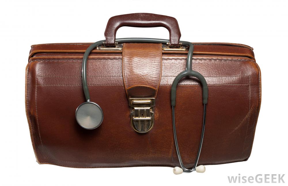 醫生的包里可能有一個處方墊。在醫生的包里可能會發現一些標準的器具,包括聽診器、耳鏡(檢查耳道)、血壓袖帶、止血帶、鑷子、縫線、針、剪刀、手術刀、抗生素、阿司匹林、止痛藥、繃帶、防腐劑、棉花、嗅鹽和抗菌霜醫生的包可以攜帶足夠的物品,幫助醫生評估患者或處于危機中的人的生命體征,并在必要時執行基本的緊急程序,以幫助穩定患者,直到他或她可以被運送到醫療機構聽診器一種聽診器,通常裝在醫生的包里。真正的、古董的醫生包被視為收藏品,可以根據形狀以不同的價格出售袋子,它的歷史和顯著特征。特殊的特征可能包括獨特的隔間和設計特征或字母縮寫字母。醫生的袋子也可以在許多歷史博物館中找到