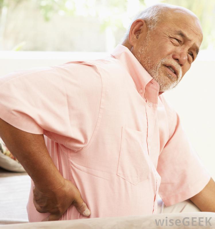 一個健康的脊柱和一個脊柱骨關節炎的例子,脊椎骨關節炎是背部問題的一個原因。椎間盤突出是一種背部問題,通常發生在腰椎脊柱肋骨和髖部之間的脊柱部分。椎間盤是幫助移動和保護脊柱的緩沖材料,當椎間盤壓迫脊柱周圍的神經時,就會出現椎間盤突出。椎間盤滑脫或破裂與椎間盤突出相同。自然老化過程減少了兩者之間的緩沖量光盤,所以椎間盤突出更容易發生在老年人身上。骨關節炎是另一種隨著年齡增長更容易發生的背部問題。60歲以上的人特別容易患骨關節炎。骨關節炎是一種破壞關節軟骨或緩沖蛋白,與骨關節炎相關的背部問題的癥狀包括下床時脊椎的一部分隱痛。