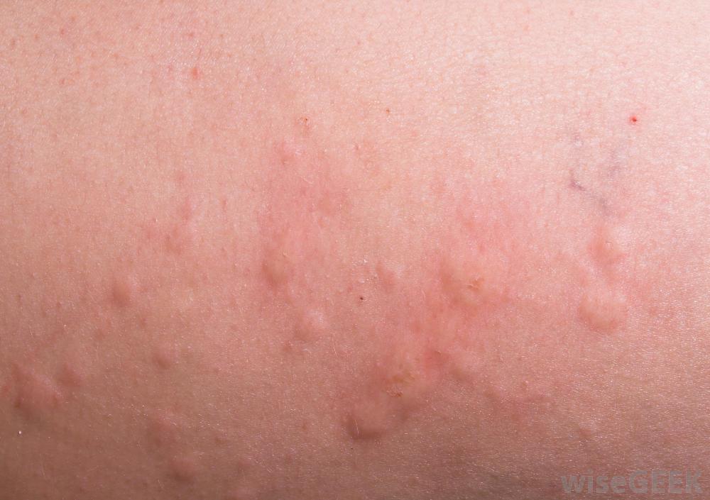 對蚊蟲叮咬的過敏可能會導致蕁麻疹的發生。一些可能的癥狀表明對蚊蟲叮咬過敏的癥狀包括周圍區域明顯的紅腫咬傷。咬傷周圍的大面積皮膚可能會產生皮疹,在某些情況下,皮疹周圍的區域可能會出現水皰。這些水皰通常會同時疼痛和瘙癢。偶爾,全身會出現廣泛的皮疹